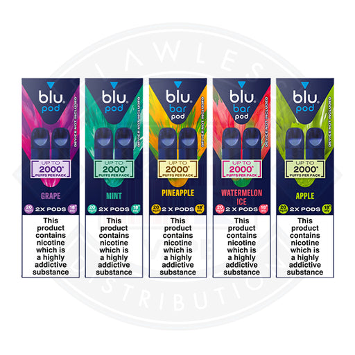 The Blu Bar prefilled pods are made to fit the Blu Bar vape kit perfectly. Each pod comes with 2ml of e-liquid and lasts for about 1000 puffs befor...