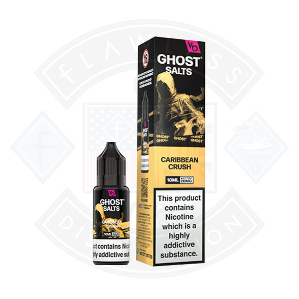 Caribbean Crush nic salt e-liquid by Ghost Salts features a sweet, tropical flavour. Juicy mango, ripe pineapple and tangy grapefruit notes combine throughout every puff.